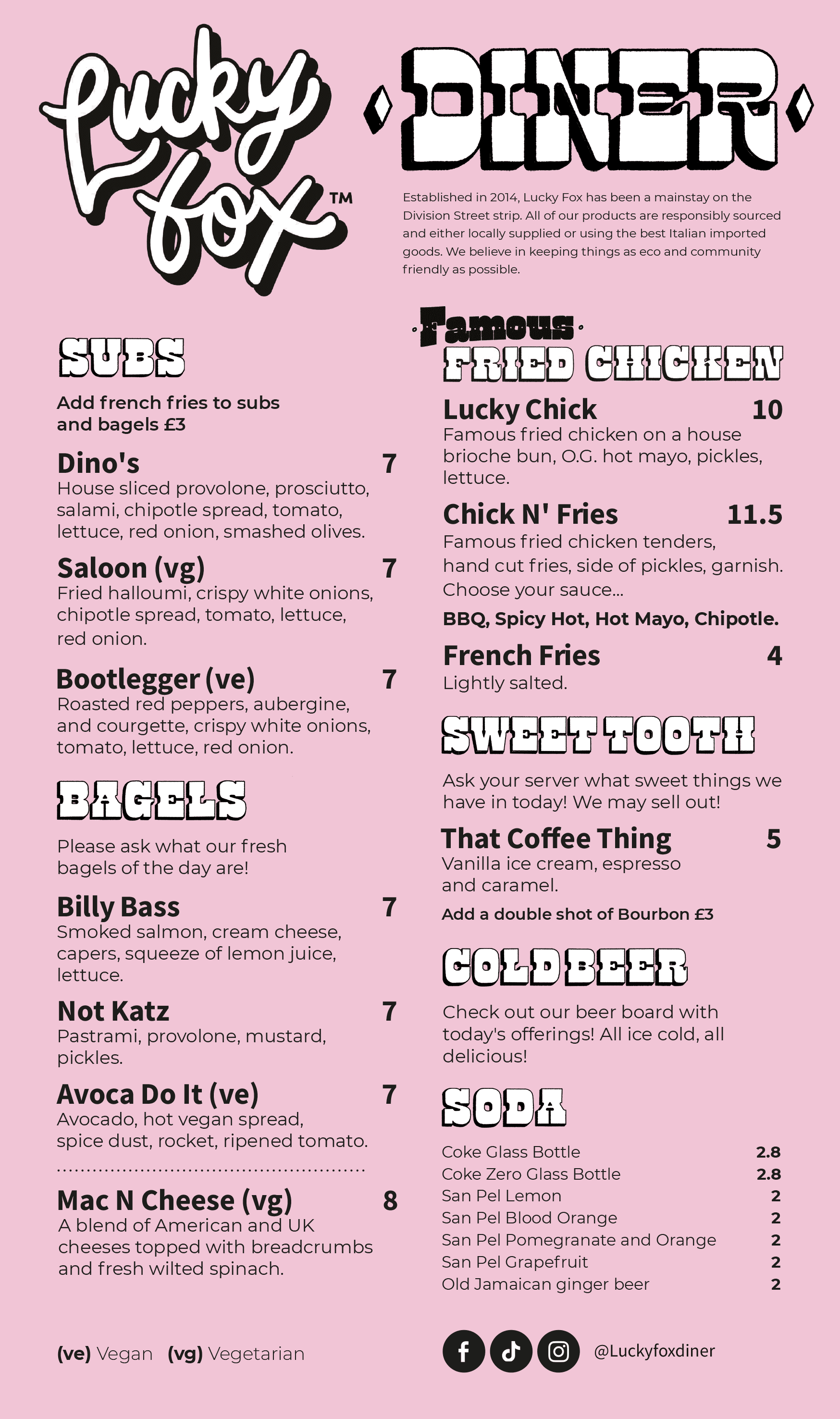 Drinks menu for Lucky Fox, Sheffield. Illustrations by BenPMA.